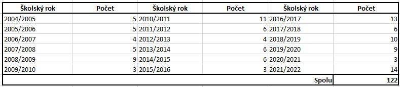 Tabuľka č.2: Počty absolventov FTVŠ UK, ktorí nadobudli najvyššiu možnú úroveň vzdelania (Zdroj: FTVŠ)